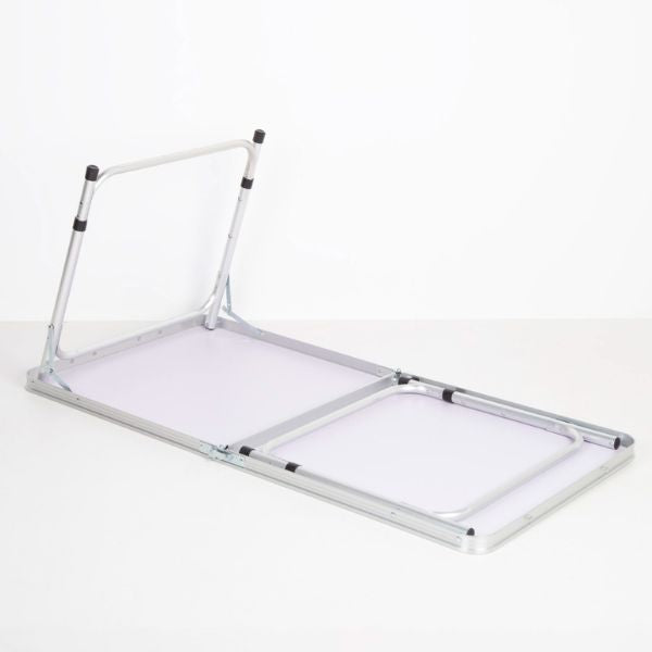 - Materiales resistentes: Fabricada con tablero de MDF color blanco y estructura de aluminio (120x60x60-70 cm) para mayor ligereza, durabilidad y resistencia a la intemperie. Soporta hasta 30 kg.